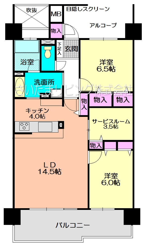 洋室6畳 洋室6.5畳 S3.5畳 LD14.5畳 K4畳