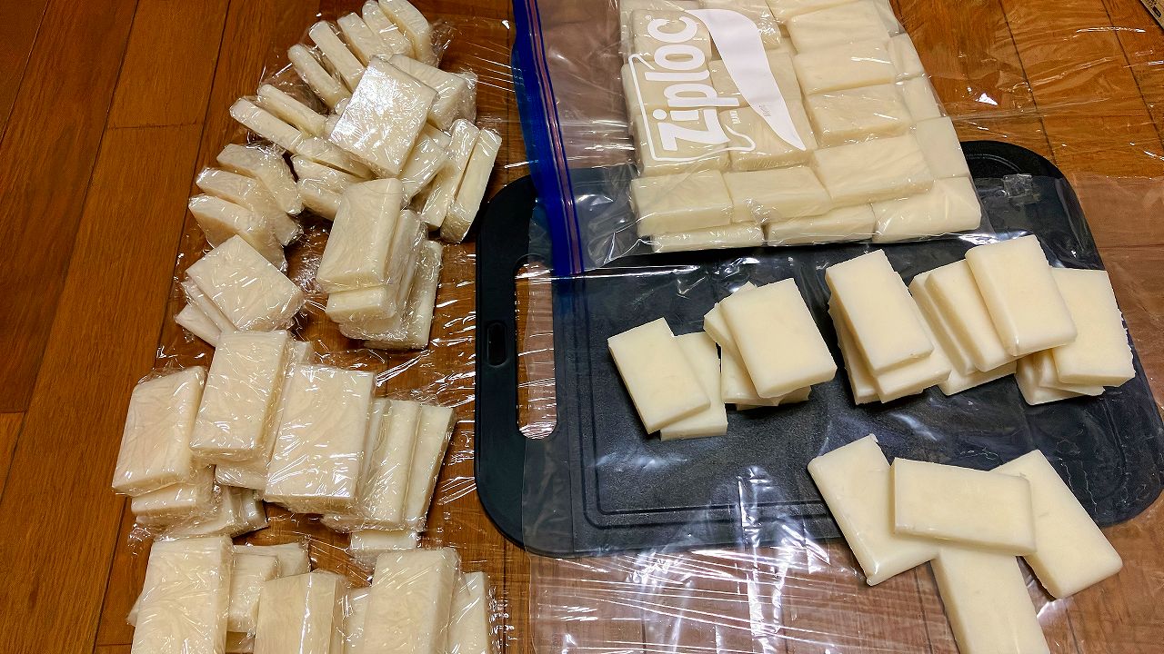 切ってラップに包んで1時間くらいかかりました。。。