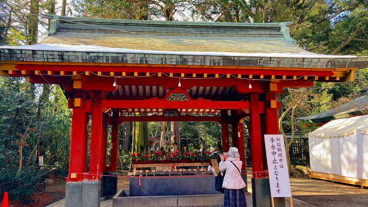 今年も手水舎は使用できずきれいに飾り付けがされていました。